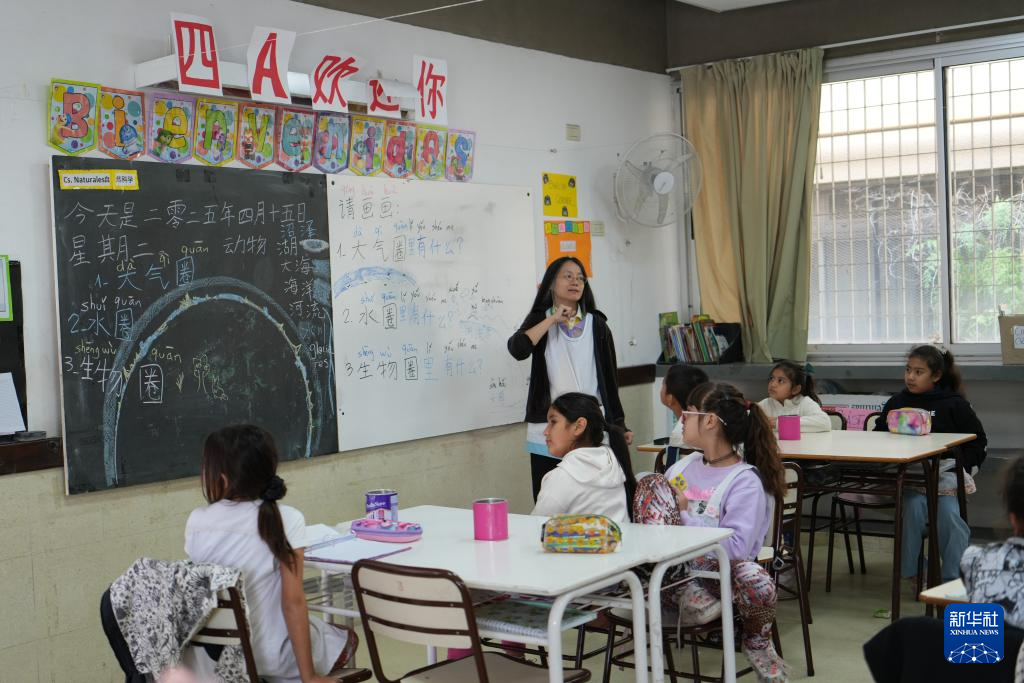 4月15日,阿根廷首都布宜诺斯艾利斯市第五学区第28号小学的中文教师在上课。新华社记者 张铎 摄